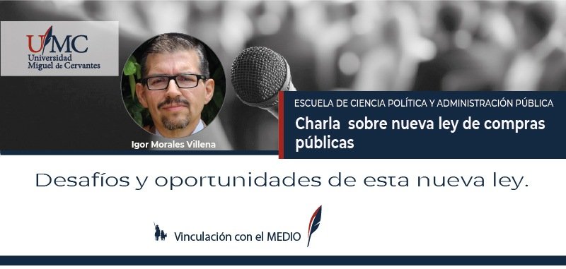 [vc_row][vc_column][vc_column_text] El miércoles pasado miércoles 05 de junio, en formato online, la Escuela de Ciencia Política y Administración Pública de la Universidad Miguel de Cervantes organizó con éxito la charla titulada “Desafíos y oportunidades de la nueva ley de compras públicas”, dictada por el experto sr. Igor Morales Villena. La actividad, orientada principalmente a funcionarios […]