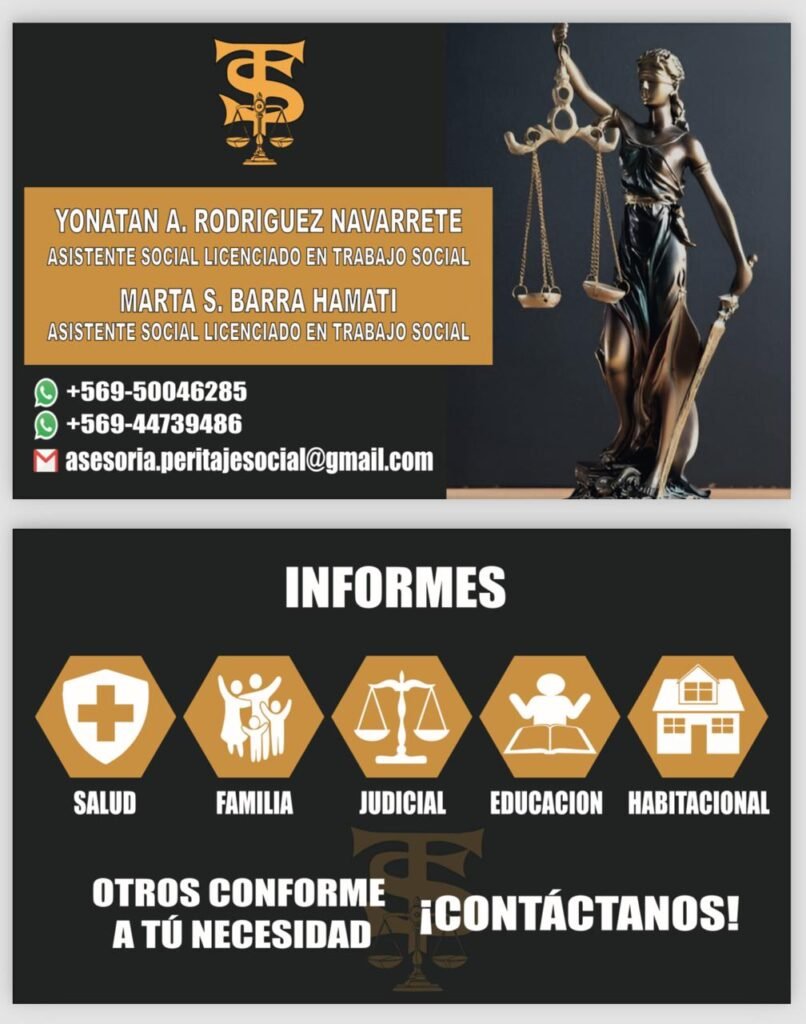 Contacto: asesoriaperitajesocial@gmail.com Las personas interesadas deben ponerse en contacto directamente con el titulado o egresado.