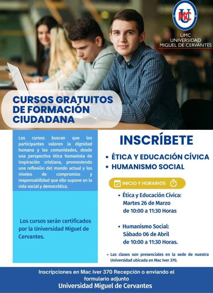La Universidad Miguel de Cervantes ofrece a la comunidad dos cursos de Formación Ciudadana: